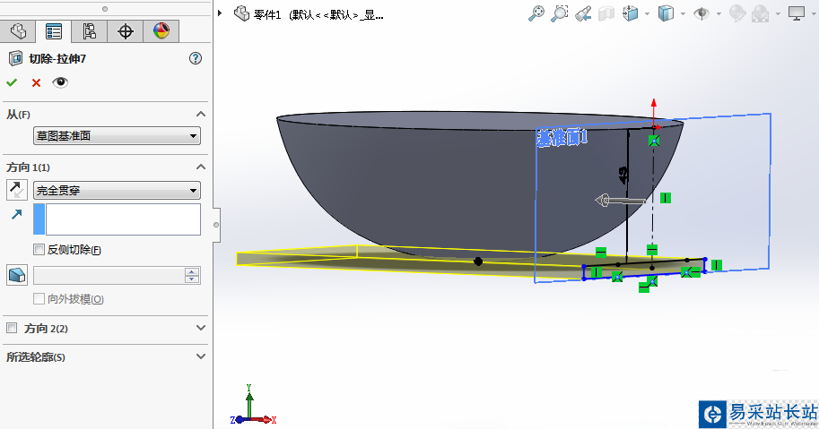 8、利用拉伸切除命令,對碗的底部進行切除改進。