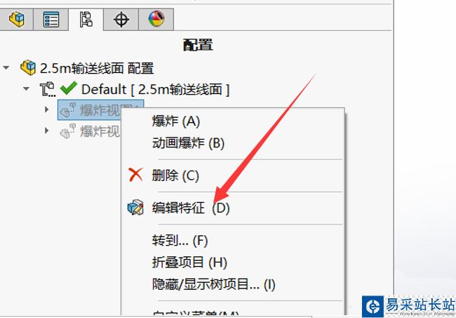 4、然后選擇編輯特征即可繼續(xù)編輯爆炸視圖了。