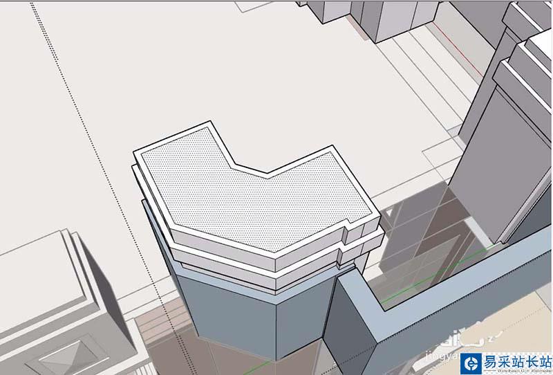 1、首先,我們開啟草圖大師,打開我們需要進(jìn)行處理的模型,找到我們需要進(jìn)行處理的屋頂,直接雙擊屋頂平面,進(jìn)行平面全選。