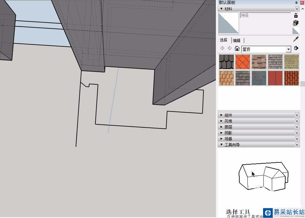 3、如果是比較特殊的外飾面,我們最好使用鉛筆工具進行勾勒,su只有閉合線條才會形成面,我們需要注意閉合線條。