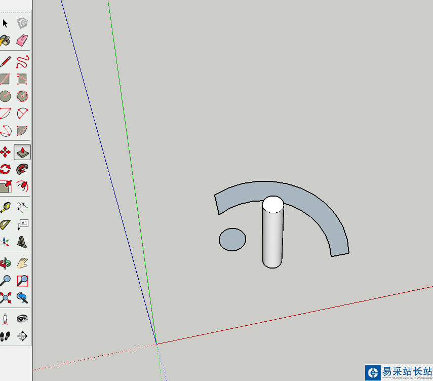 3、畫出一個(gè)圓,快捷鍵為C,推拉出一個(gè)圓柱體。快捷鍵為P。