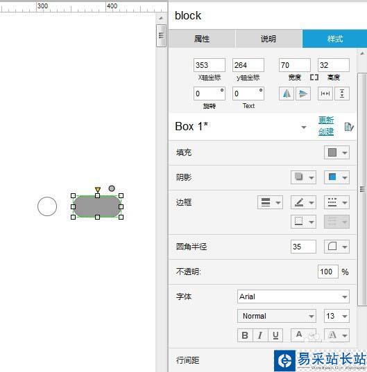 設置”圓形“尺寸為28*28,命名為round;設置”矩形“尺寸為70*32,命名為block,填充色#999999,圓角半徑35,字體顏色#FFFFFF,文字內容”OFF“,右對齊