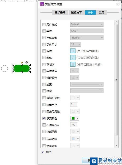 另單獨再設置”矩形:block“的選中時,填充色為#009900