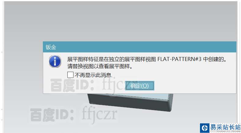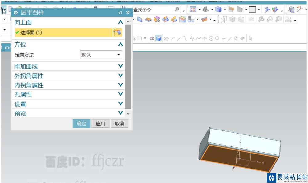 5、激活展平圖樣,選擇模型的底面為向上面;直接確定,得到展平圖樣的視圖。