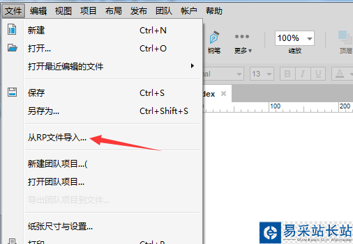 2、點擊了文件的菜單之后,彈出了下拉菜單選中為從rp文件導入的選項。