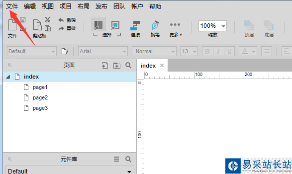 1、首先,打開一個的Axure8的進入該界面當中,點擊左上角中的文件的菜單。