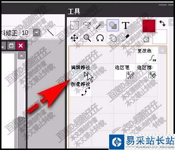 2、然后,在畫布中畫出一個(gè)矩形。接下來(lái),要修改此矩形。點(diǎn)擊:編輯路徑