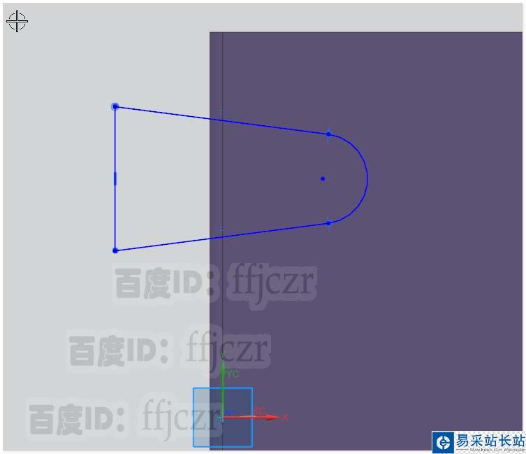 4、選用拉伸命令,草圖平面為新建的坐標(biāo)XY面;在草圖中用輪廓線命令,在X軸正向繪出帶圓弧的輪廓。