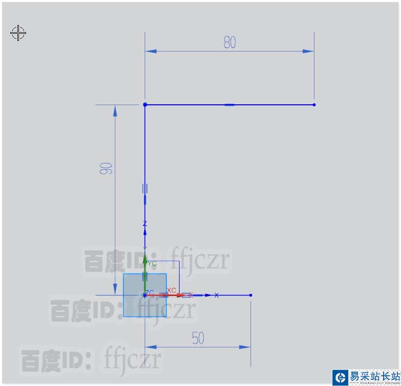 1、選用輪廓彎邊命令,創(chuàng)建一個折彎件。XZ面為輪廓彎邊的截面草繪圖,用輪廓曲線繪出折彎件的截面線。在X軸上繪一條長50的直線,線在X軸上其左端點(diǎn)與坐標(biāo)原點(diǎn)重合;從原點(diǎn)繪一條在Y軸上的直線,長90,從該直線的另一端點(diǎn)處繪一水平線,長為80,并與上一直線垂直;截面線繪制完成。