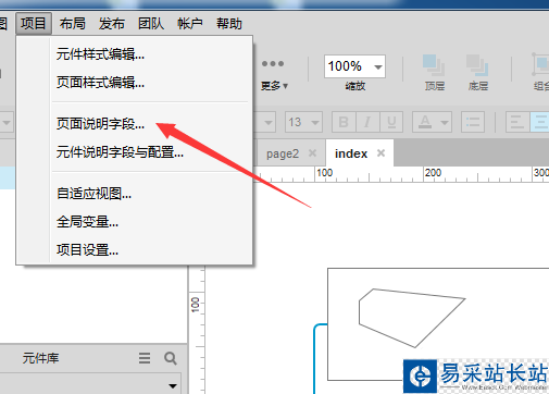 3、點擊了項目的菜單之后,彈出了下拉菜單選中為頁面說明字段的選項。