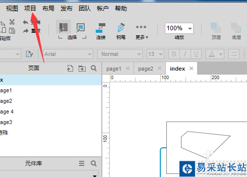 2、點擊了的Axure8的菜單中的項目的菜單。