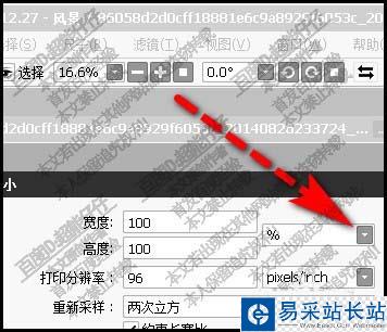 4、調出了圖像大小的面板,當前的高度與寬度顯示為100;有些朋友可能有些懵;圖像大小怎么顯示100;