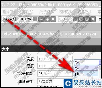 6、彈出的下拉內容中,選擇:pixels,也就是PX;翻譯成中文就是像素