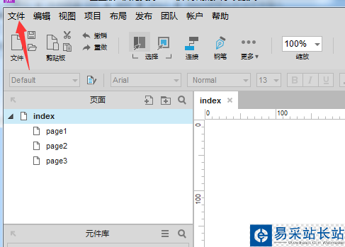 2、點(diǎn)擊了的Axure8的菜單中的文件的菜單。