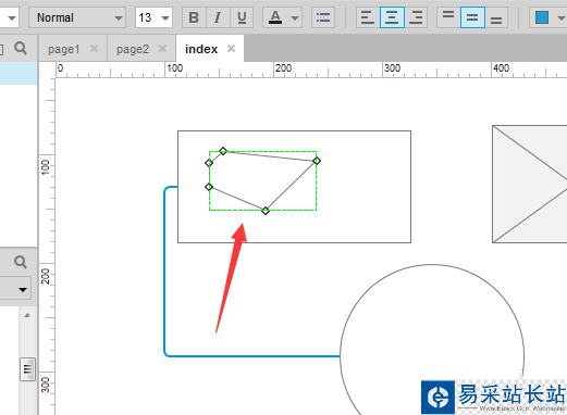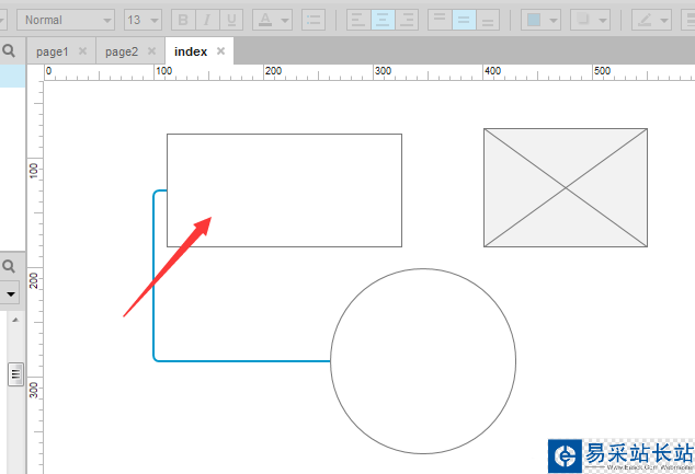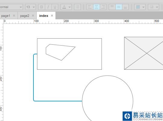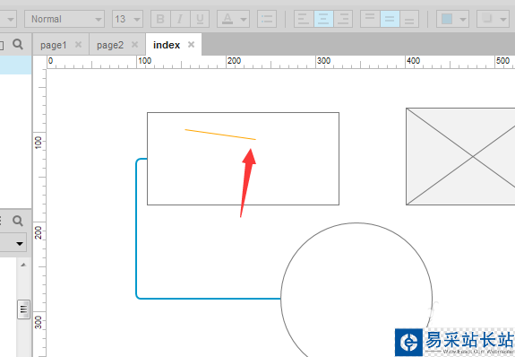 5、在交互設計圖中使用的連接線連接起來,就可以畫上一個圖。
