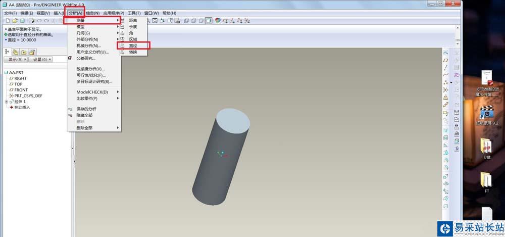 2、先點--分析--測量--直徑