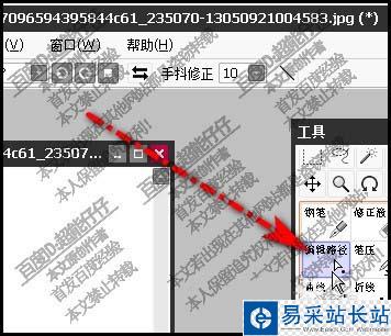 7、調(diào)出編輯路徑工具,即時(shí),所描的邊顯示出各個(gè)錨點(diǎn)來(lái),那么,我們就可以再作一些細(xì)致的調(diào)整。