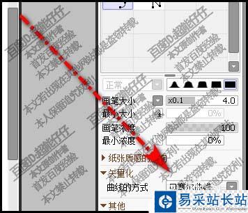 4、我們看曲線工具的屬性設(shè)置這里,把矢量化設(shè)置為貝賽爾曲線