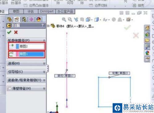 3、當上面兩個草圖都畫好之后,你要看下左側的零件下拉菜單中有沒有剛剛的兩個草圖,別搞錯了。