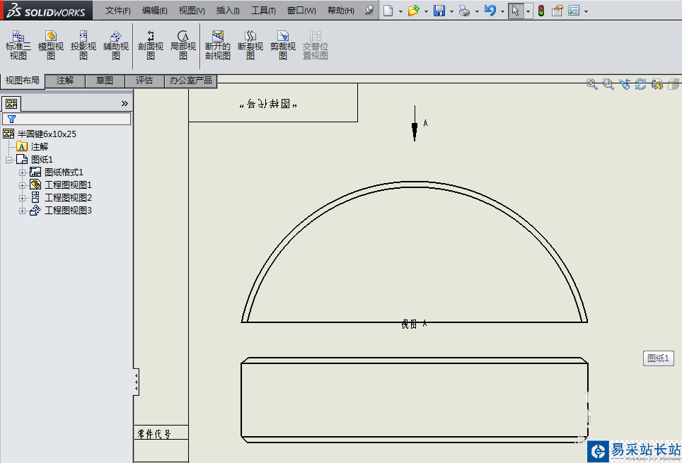 1、如下圖所示,打開事先保存好的SolidWorks工程圖,可以看到之后兩個視圖。
