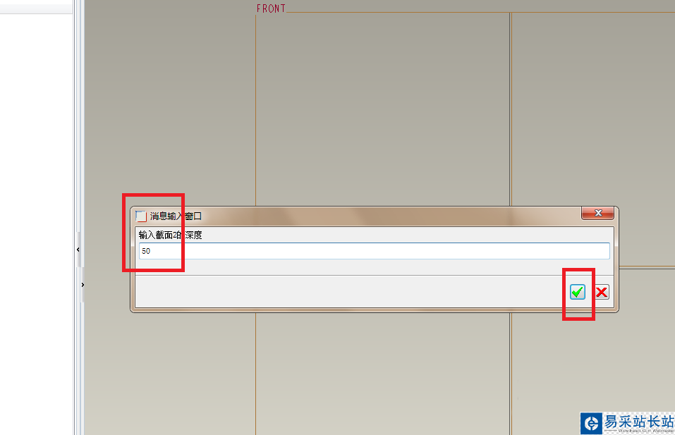 10、如下圖所示,截面2的深度設置為50,然后點√。