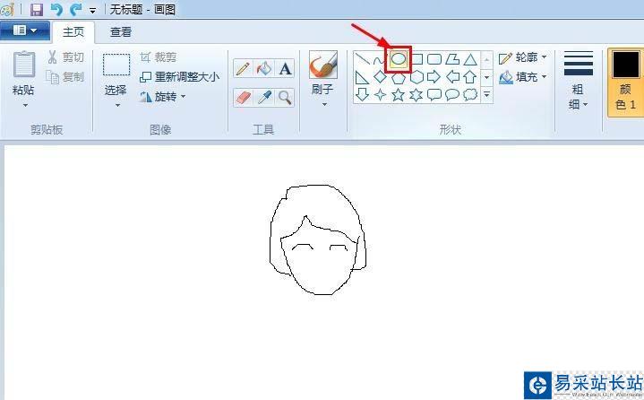 5、在形狀選擇框中選擇橢圓形,并畫出眼睛。