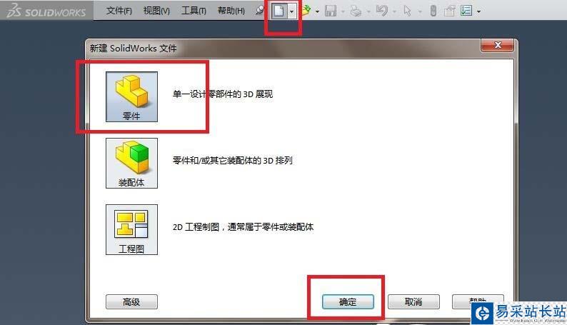 1、如下圖所示,打開SolidWorks軟件,新建一個(gè)空白的零件文件。