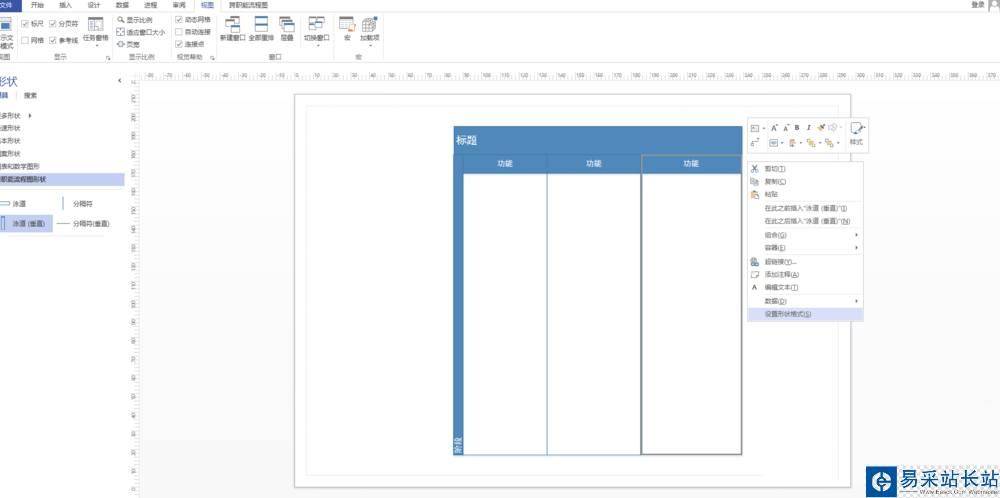 5、選泳道,右鍵選擇設置形狀格式,如圖