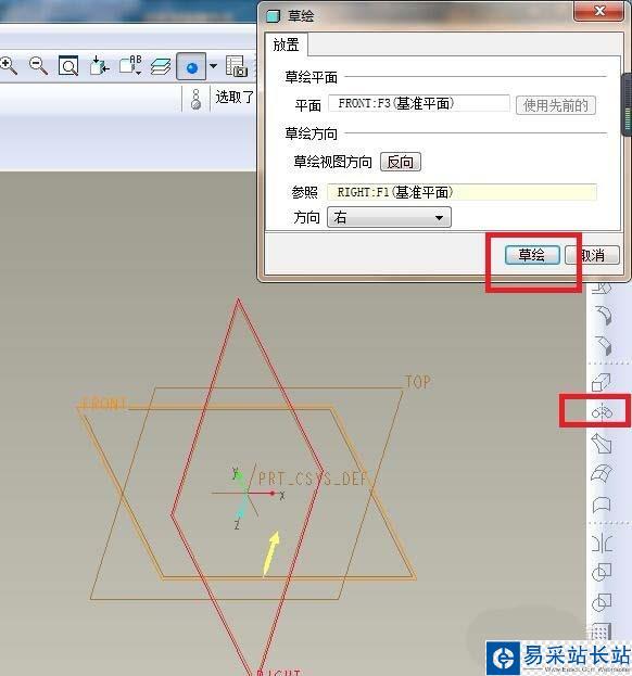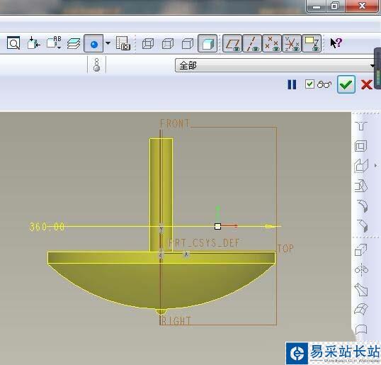7)點(diǎn)擊“√”,完成并退出草繪。
