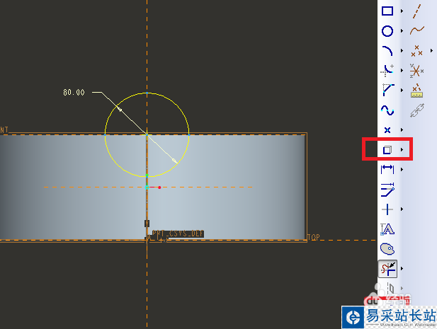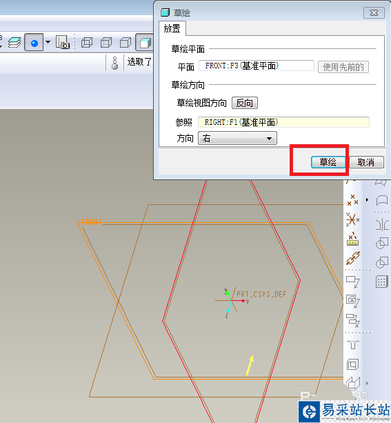 4)點擊右邊工具箱中的“√”,完成并退出草繪。