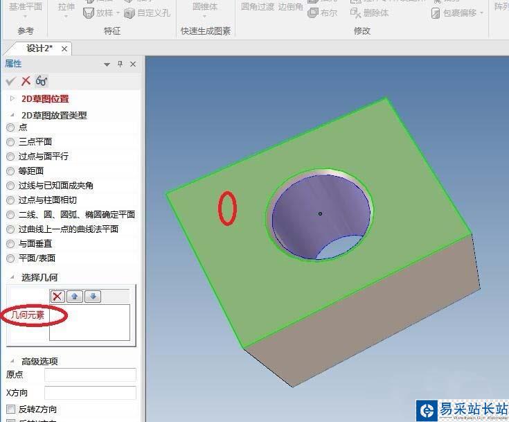 7、如下圖所示,“幾何元素”一欄,我們將要點擊實體的上表面。