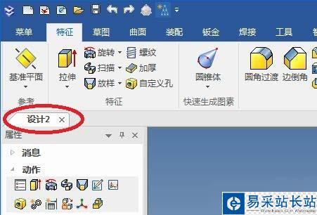 2、如下圖所示,為了節省時間,直接從設計元素庫中拖一個長方體和一個孔類圓柱體,然后手動修改一下孔的尺寸。