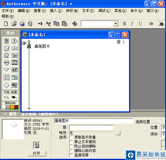 以上就是Authorware插入畫筆圖片作圖的教程,希望大家喜歡,請繼續關注錯新站長站。
