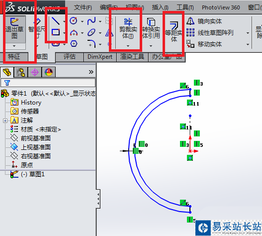 6)點擊工具欄中的“退出草圖”圖標,完成并退出草圖。