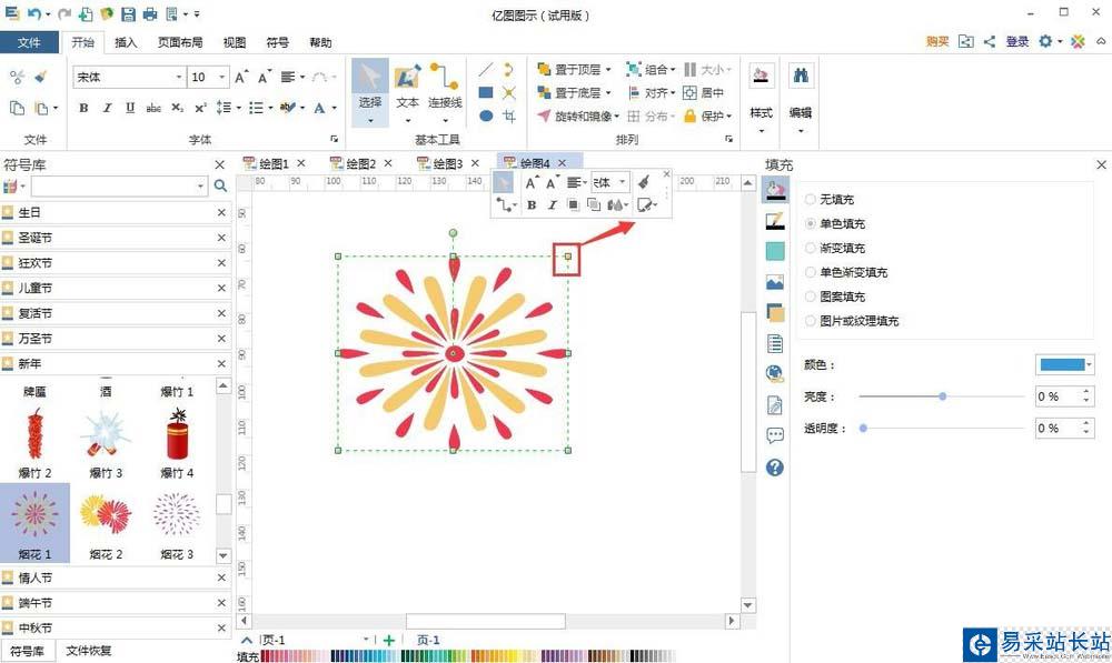 以上就是億圖圖示插入煙花綻放圖形的教程,希望大家喜歡,請繼續關注錯新站長站。