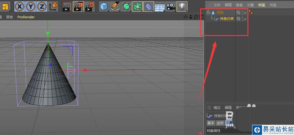 1、先建立圓錐體,然后再選擇樣條約束