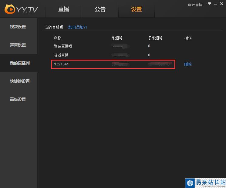 可以在“設置”-“我的直播間”里對已添加的直播間進行管理