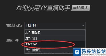 對于已經有自己OW直播間的用戶,你可以在“直播間名稱”的下拉選項里選擇“添加直播間”。對于新注冊的用戶,還沒有創建自己直播間的,您需要先創建一個屬于自己的直播間。