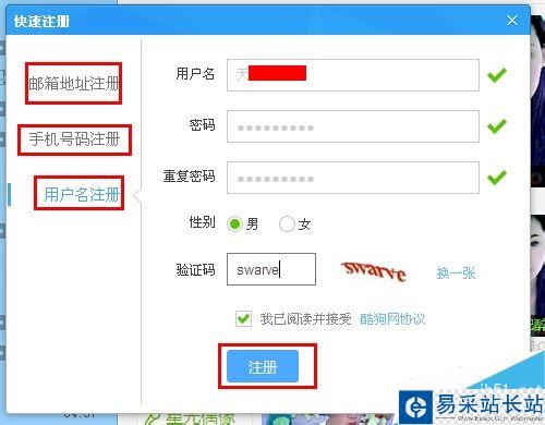 有三種注冊(cè)模式——郵箱、手機(jī)及賬號(hào)。為方便我這里選擇賬號(hào)注冊(cè):