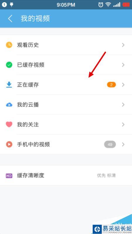 下載之后我們點擊個人中心的【我】,然后點擊【正在緩存】點擊進入之后就可以看到視頻正在下載。