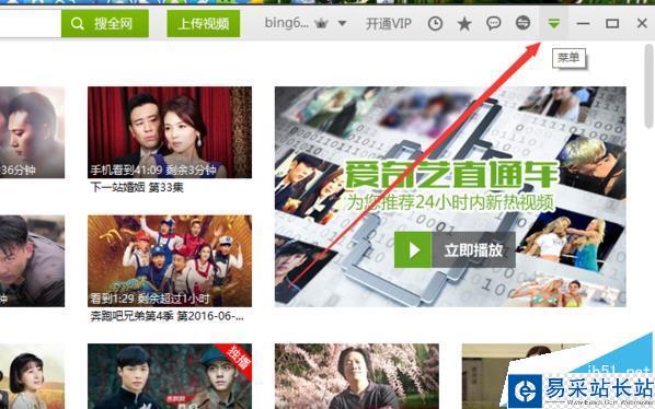 2、、在打開播放器窗口,點擊右上角的“菜單”工具圖標按鈕。如圖所示;