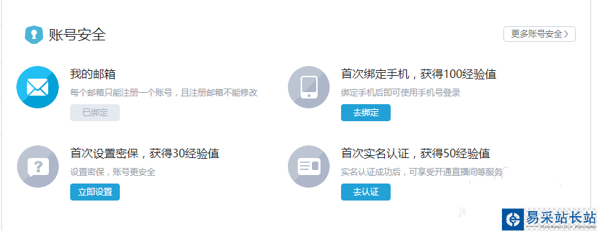 4、然后在進入個人中心后,頁面下方會有賬號安全欄(如圖)