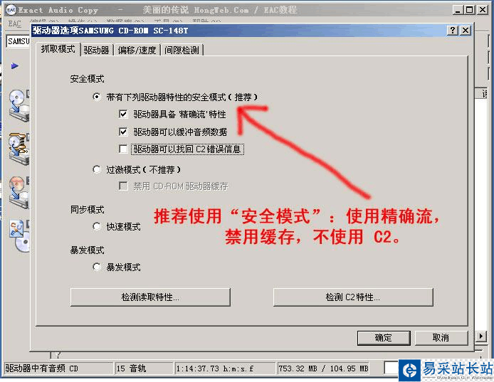 2. 接著打開菜單欄EAC項中的“驅動器選項”,準備對“抓軌模式”進行設置