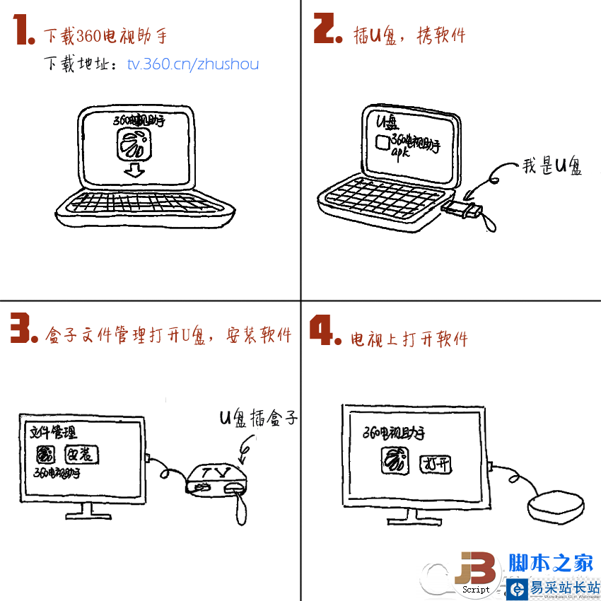 推薦方法1:用U盤給盒子安裝360電視助手——海量免費(fèi)軟件,玩轉(zhuǎn)電視盒子。