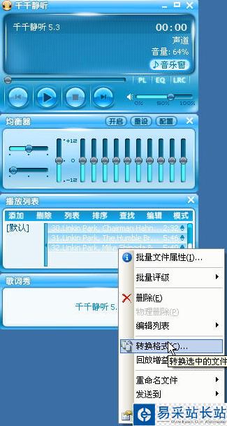 第二步:把文件就在千千靜聽里打開了,這里已經(jīng)是單個(gè)歌曲文件了,選取所有要轉(zhuǎn)換出來(lái)的mp3文件(按住shift可以復(fù)選)