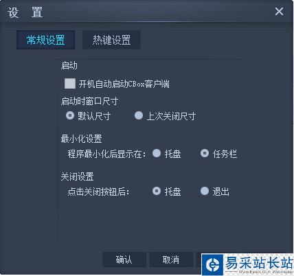 可通過單選按鈕設置點擊CBox的關閉鍵是最小化到托盤還是直接退出CBox程序;