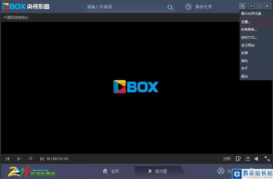 第一步:打開cbox影音,在軟件的右上方“倒三角”圖標,然后找到設置