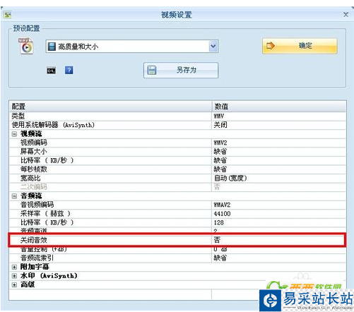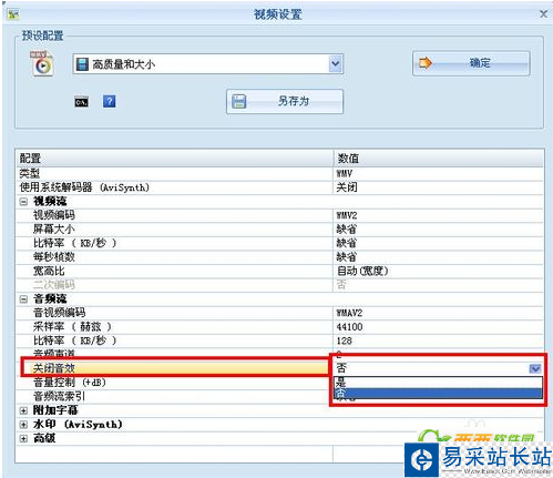打開軟件選擇視頻格式,導入視頻,點開輸出配置,在下拉列表中單擊“關閉音效”,點開右邊的小三角,選“是”,確定轉換出來視頻就沒有聲音了。