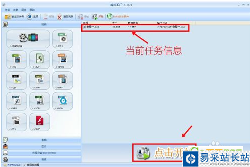 在進行這個操作時可以不轉換視頻格式,也可以同時轉換視頻的格式。在這個示例里我也同時進行了格式的轉換,把MP4格式的視頻轉換為WMV格式。