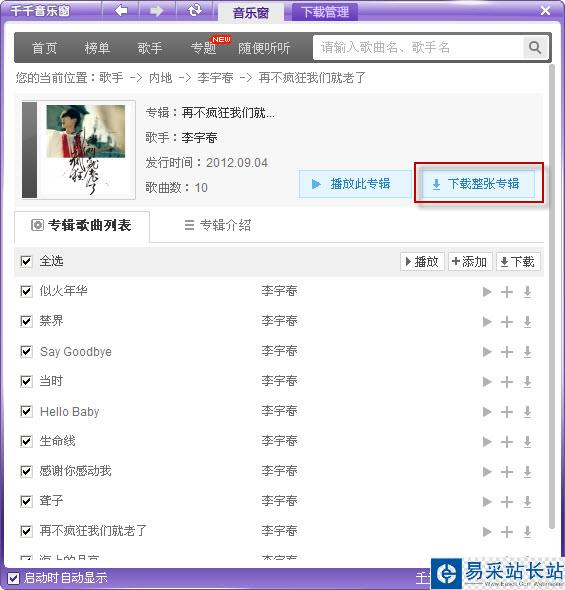 第二步:選擇一張專輯,比如:“李宇春 再不瘋狂我們就老了”,然后點(diǎn)擊下載整張專輯,也可以下載了哦。